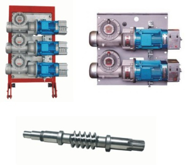 驅動裝置由帶常閉式電磁制動器的電動機、蝸輪蝸桿減速器、驅動齒輪和背輪等組成,。驅動裝置安裝在吊籠內部,驅動齒輪與導軌架上的齒條相嚙合轉動,使吊籠上下運行。
