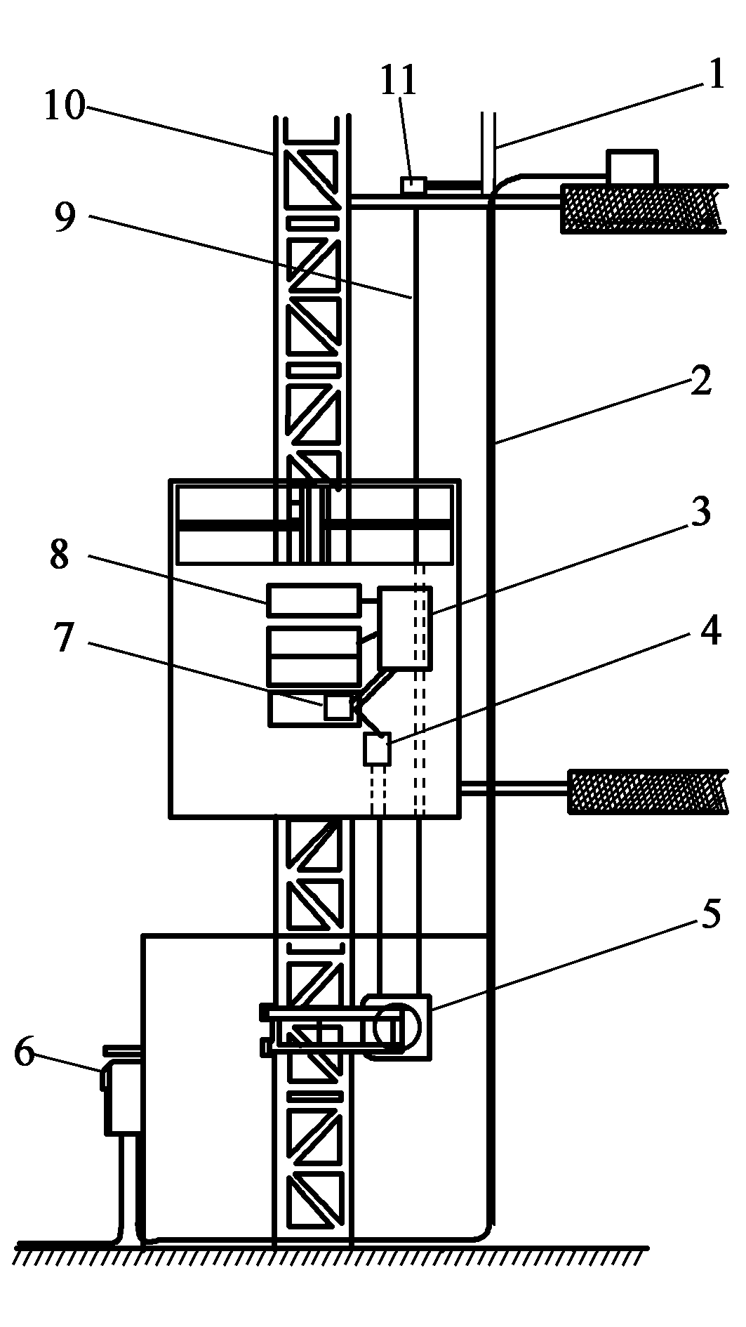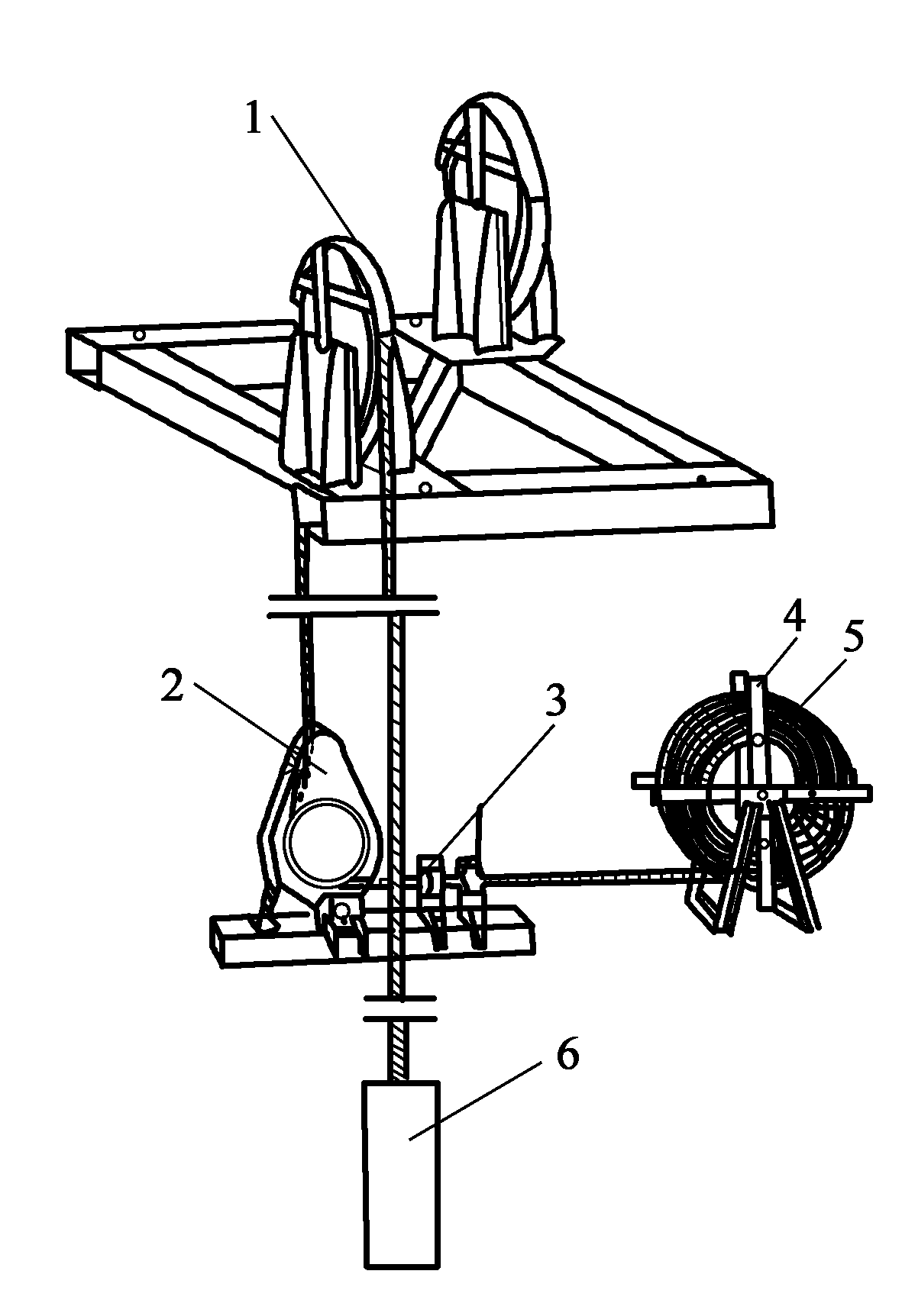 1立管;2固定電纜;3上電箱;4電纜臂;5電纜滑車;6下電箱;7極限開關;