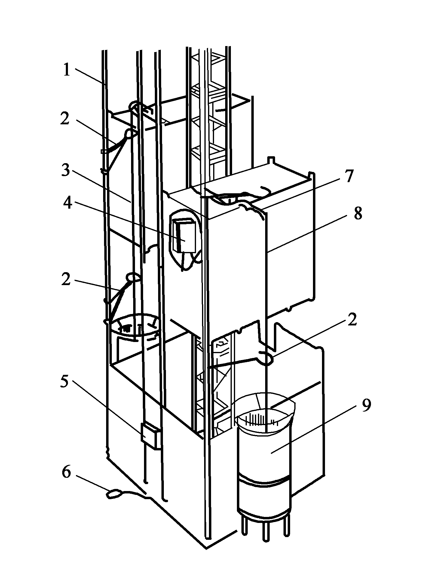 11底籠;12電纜籠;13對重;14附墻架;15電纜;16電纜保護架;17立管