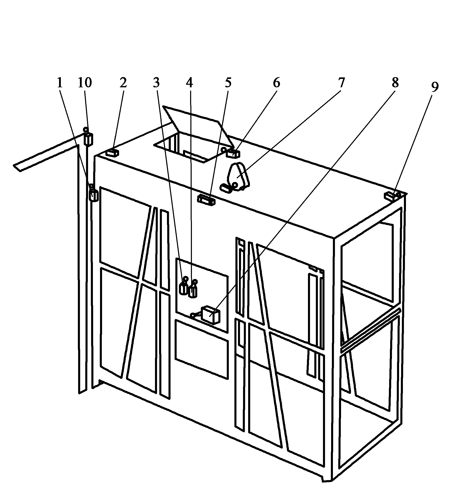 6墜落試驗專用按鈕;7電纜托架;8電纜;9電纜籠