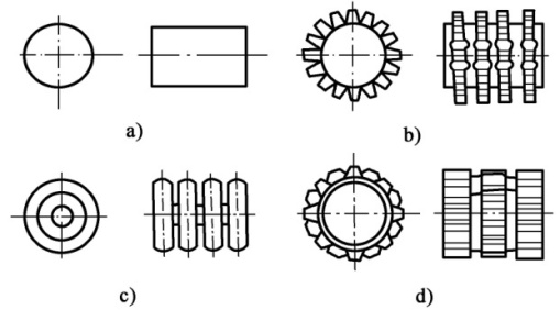 a)光滾輪;b)羊腳輪;c)氣胎輪;d)凸塊輪