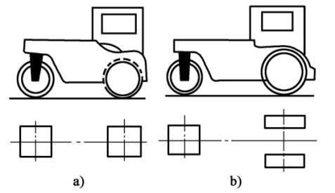 a)二輪二軸式;b)三輪二軸式