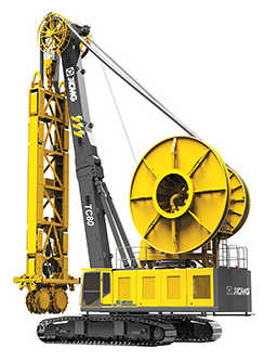 1履帶樁架;2導桿;3液壓軟管卷筒;4抓斗