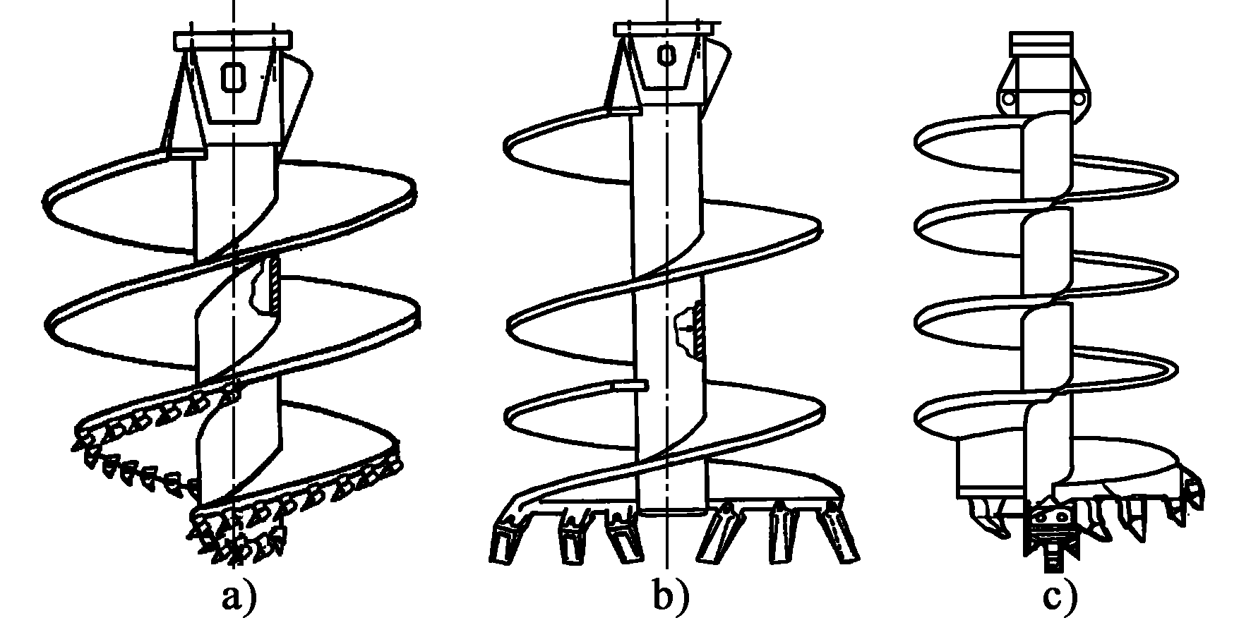 a.巖心螺旋鉆頭;b.雙刃螺旋鉆頭;c.單刃螺旋鉆頭