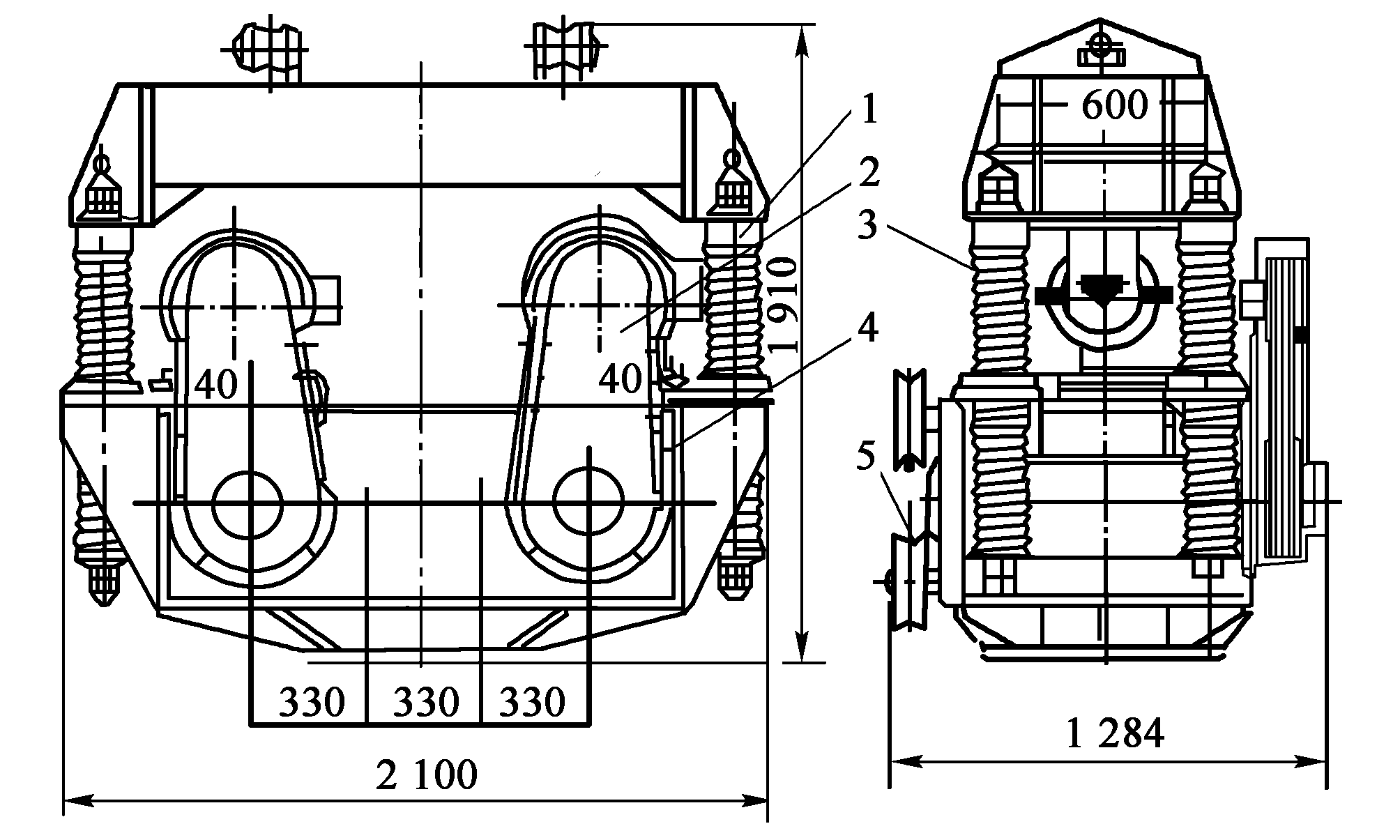 DZ30型振動(dòng)錘,主要由扁擔(dān)梁1、電動(dòng)機(jī)2、減振器3、傳動(dòng)裝置4、激振器5、夾持器6和液壓泵站等組成。