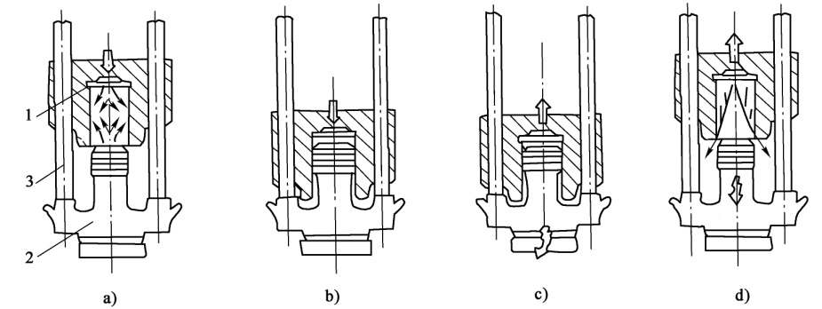 a)  壓縮;b)供油;c)燃燒;d)排氣吸氣