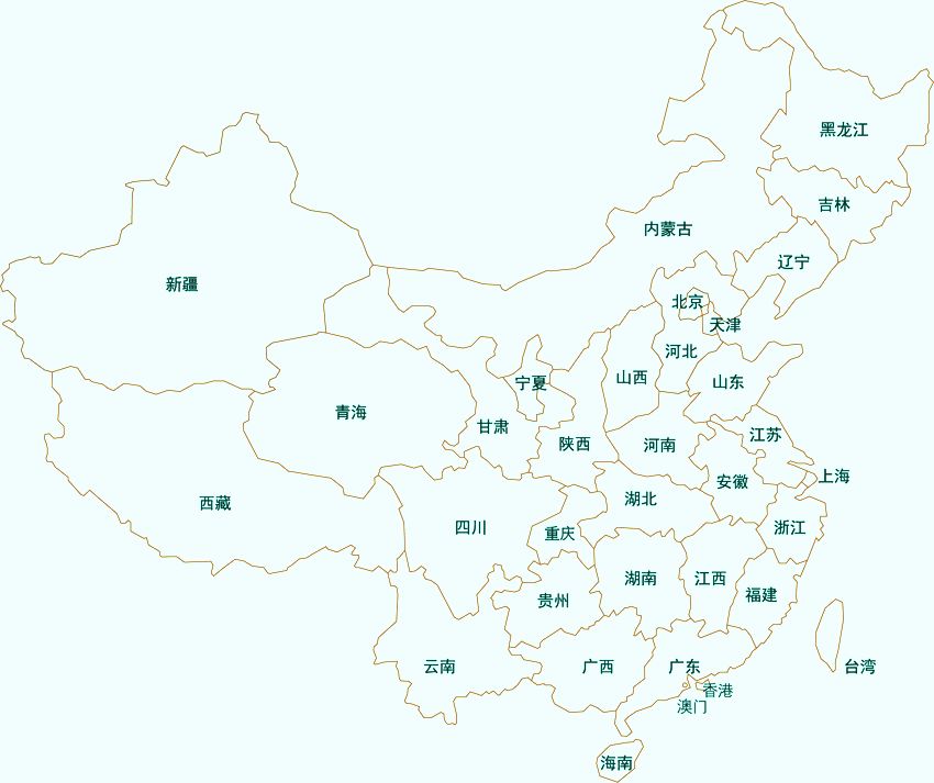 新疆 西藏 青海 四川 重慶 云南 貴州 廣西 甘肅 寧夏 陜西 湖北 湖南 廣東 山西 河南 安徽 江西 福建 內(nèi)蒙古 北京 天津 河北 山東 江蘇 上海 浙江 黑龍江 吉林 遼寧 海南 臺灣 香港 澳門